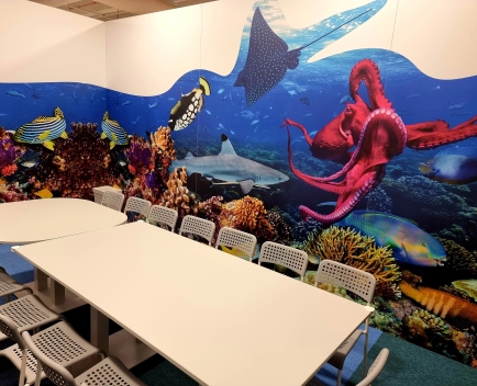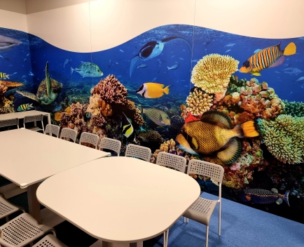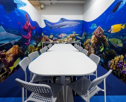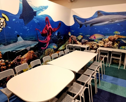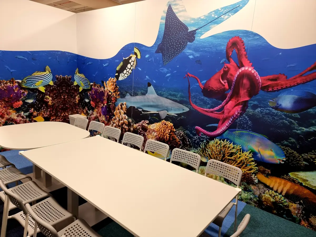 Încă de la intrare, dumneavoastră, veți fi înconjurat de minunile lumii subacvatice. Pereții sunt împodobiți cu imagini uimitoare ale recifelor de corali colorate, epavelor misterioase și creaturilor marine prietenoase precum delfini și broaște țestoase. E ca și cum ați fi într-un paradis subacvatic!